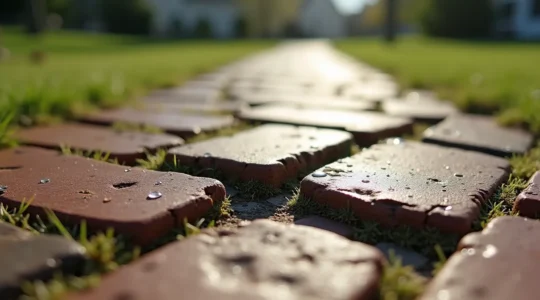 Le cycle gel-dégel ne teste pas seulement vos fondations, il attaque aussi vos matériaux de surface. Les pavés de béton poreux, les joints mal choisis et les pierres naturelles inadaptées peuvent se fissurer, s’écailler ou développer ce qu’on appelle l’efflorescence : ces dépôts blanchâtres inesthétiques qui apparaissent à la surface de la maçonnerie lorsque les sels minéraux migrent avec l’humidité.