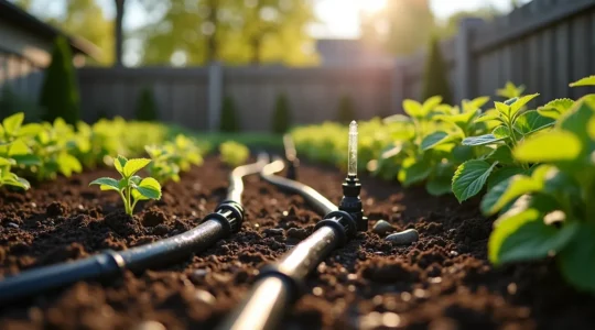 L’irrigation goutte-à-goutte ou les tuyaux suintants délivrent l’eau directement au niveau racinaire avec une efficacité de 90%, contre 60% pour l’arrosage par aspersion où l’évaporation capte une grande partie. Calculez le débit nécessaire selon les besoins spécifiques : les légumes-feuilles en croissance active requièrent 2,5 cm d’eau par semaine, tandis que les plantes indigènes établies se contentent souvent des précipitations naturelles. Une minuterie programmable permet d’arroser tôt le matin, réduisant les pertes par évaporation et limitant les maladies fongiques favorisées par un feuillage humide nocturne.
